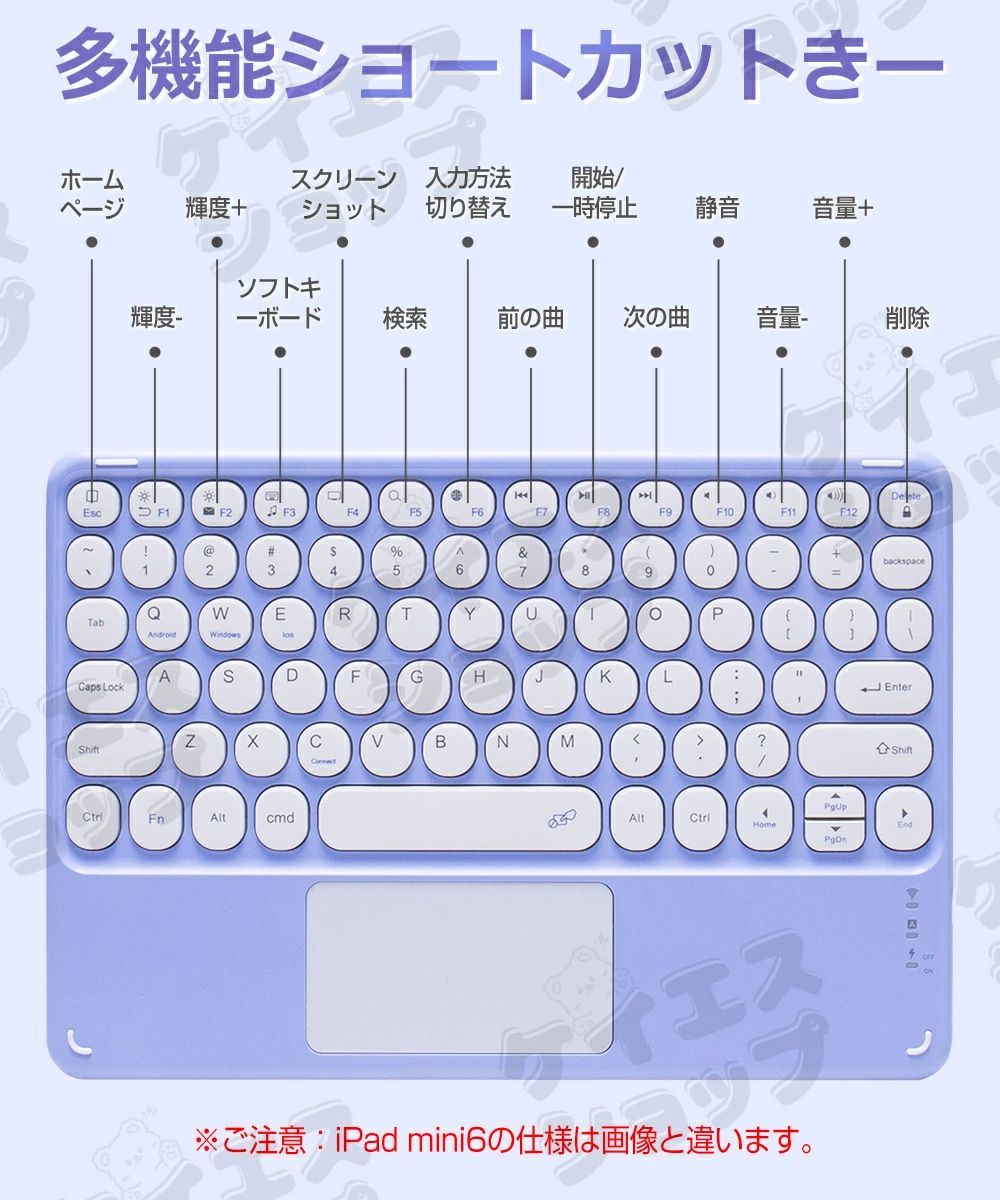 Bluetoothキーボード タッチパッド搭載 丸型キー ワイヤレスキーボード iPad Air 10.9インチ 第10世代 10.2インチ 第8世代 Pro 第9世代