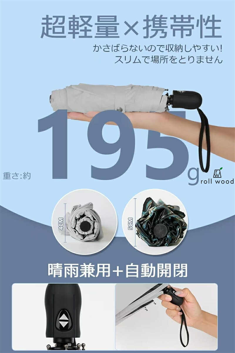 日傘 超軽量 195g UVカット率100% 完全遮光 遮熱 ワンタッチ 折りたたみ傘 コンパクト 折り畳み日傘 紫外線遮断 耐風撥水 晴雨兼用 携帯便利 レディース 母の日 父の日 メンズ