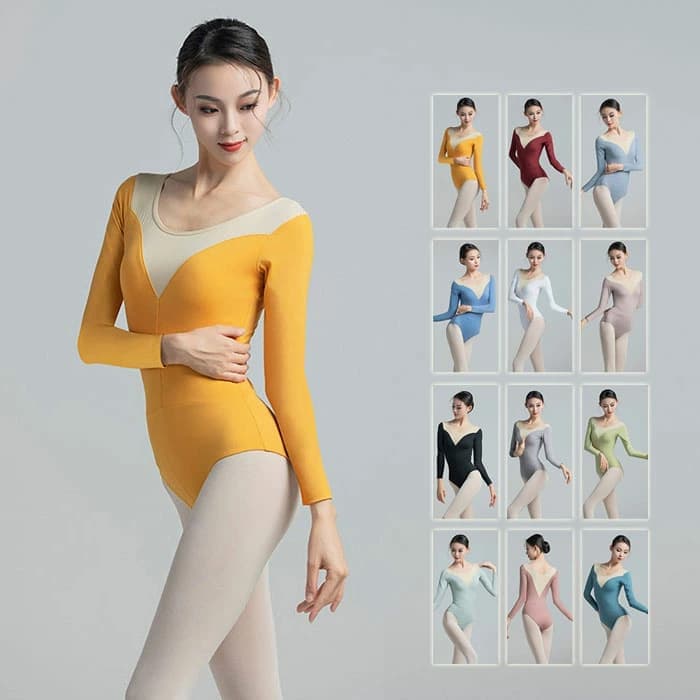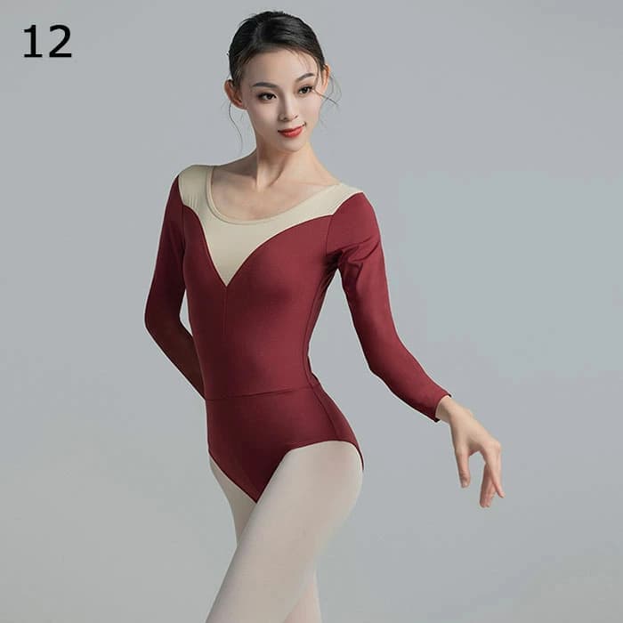 バレエ練功服 ダンスウェア レオタード バレエ用品 12色 配色 長袖 バレエレオタード レッスン着 バレリーナ 新体操 練習着 スカートなしバレエレオタード ダンス発表会 ステージ衣装 体操 競技着