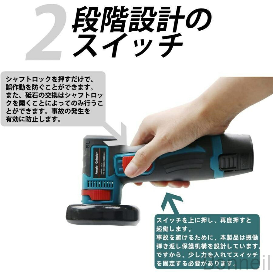 ディスクグラインダー 充電式ミニコード バッテリー1個付き バッテリー2個付き