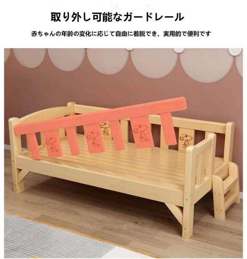 子供ベッド 赤ちゃん 階段 木製 天然 両面ガードレール さんめんガードレール さんめんガードレール+階段 四面ガードレール+階段 128*60 150*70 168*80 180*80