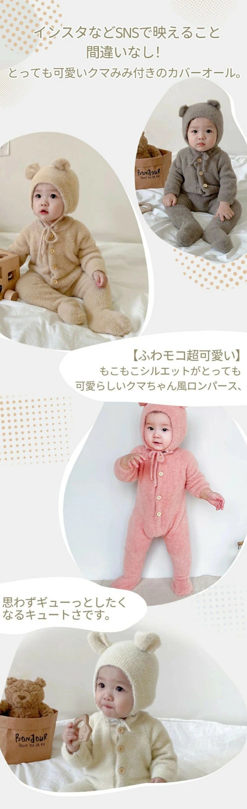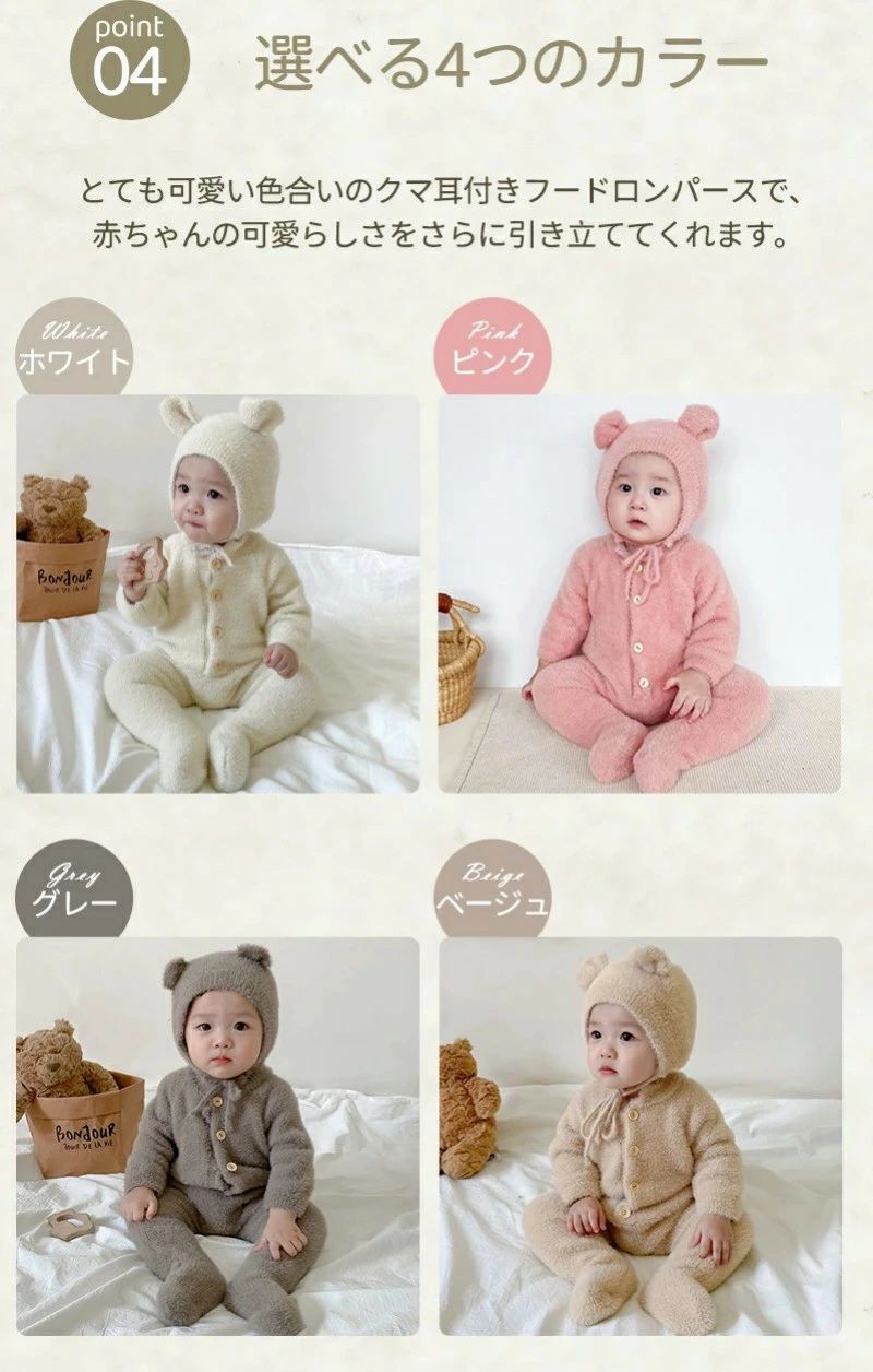 ジャンプスーツ ベビー ロンパース ク キッズ ベビー マタニティ 人気 ベージュ グレー ピンク ホワイト 66cm 73cm 80cm 90cm 100cm
