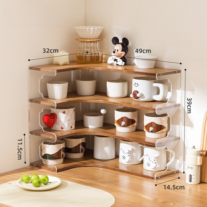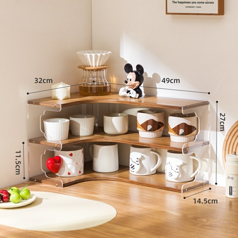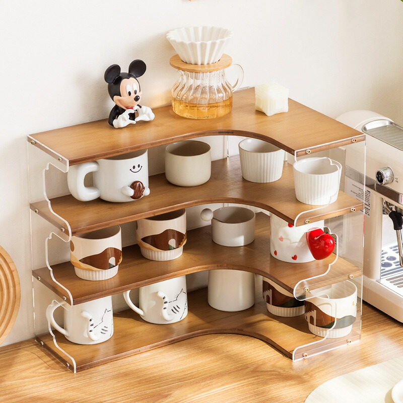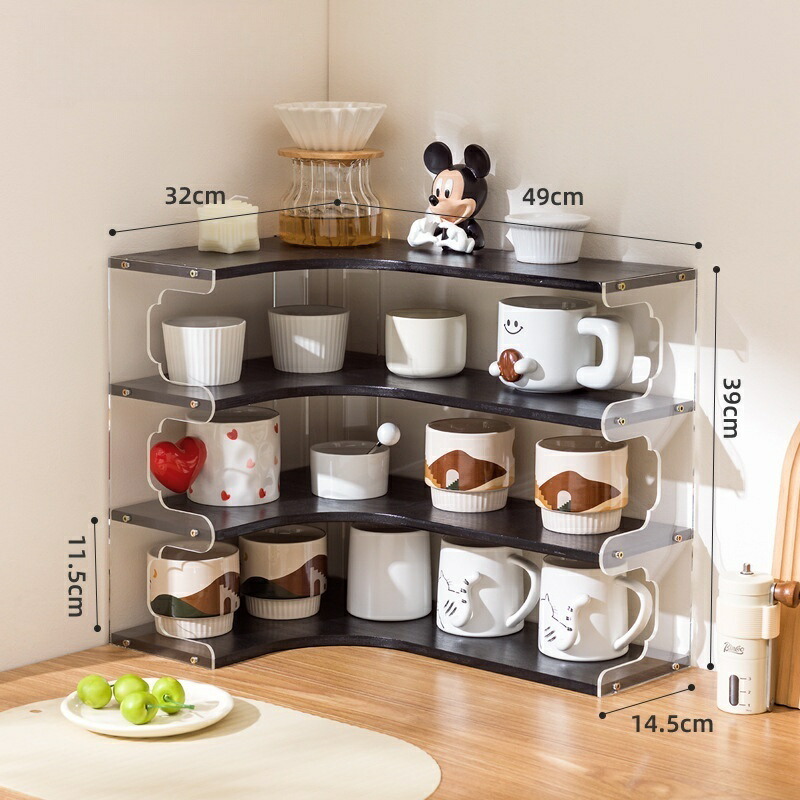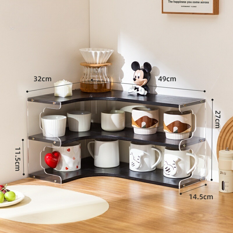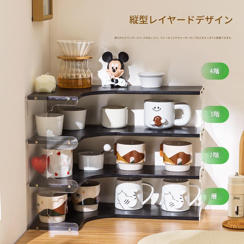 デスクトップコーナーカップラック、多層 キッチン用品 食器 調理器具 豊富な品揃え ブラウン-3層 ブラウン-4層 ブラック-3層 ブラック-4層