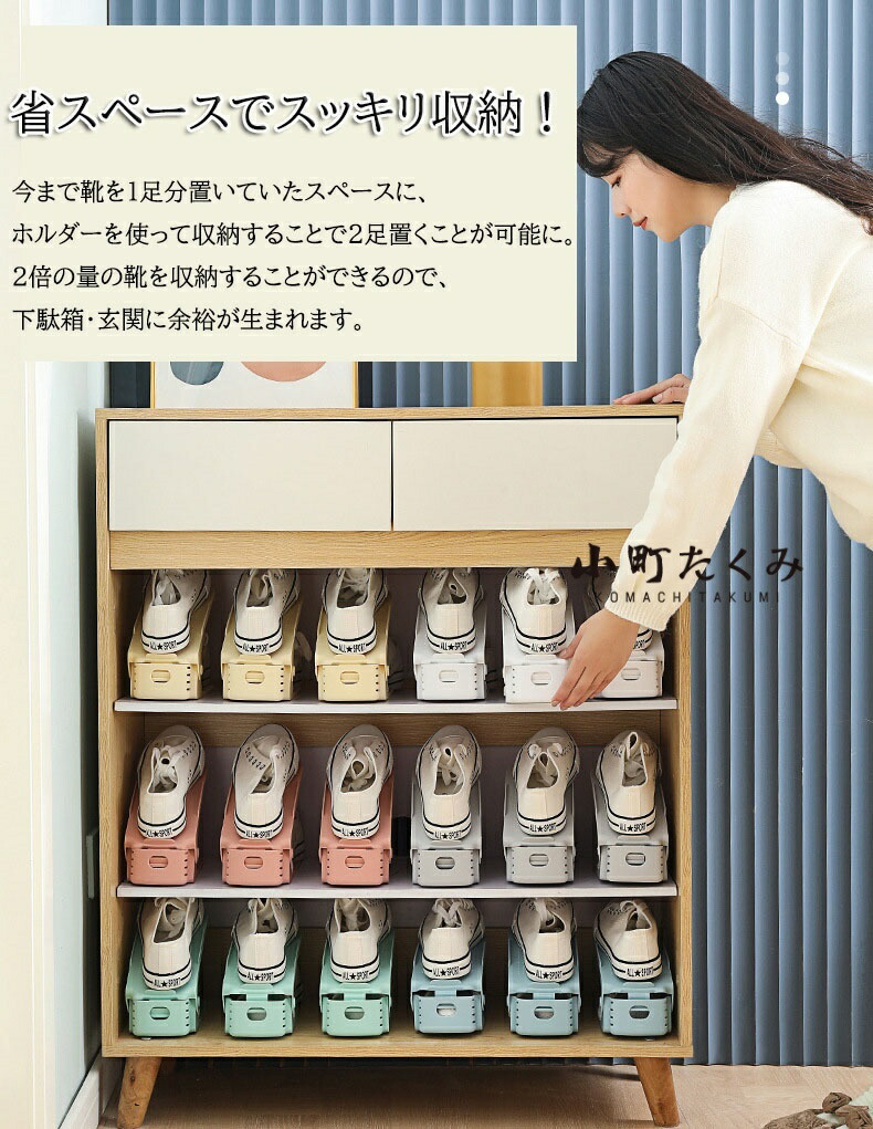 くつホルダー 6足分 コンパクト 靴 グリーン(6個) ブルー(6個) ピンク(6個) イエロー(6個) ホワイト(6個) ブラック(6個) グレー(6個) グリーン(10個) ブルー(10個) ピンク(10個) イエロー(10個) ホワイト(10個) ブラック(10個) グレー(10個)