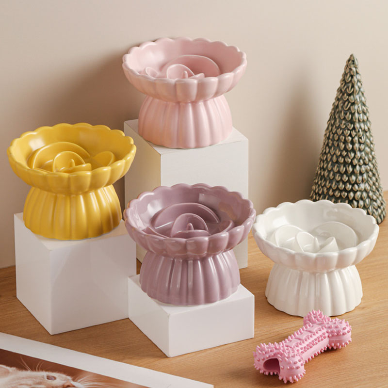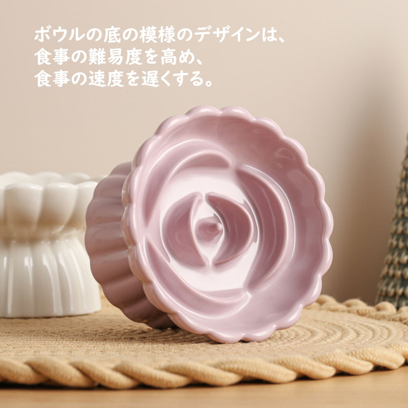 早食い防止 食器 猫 食べやすい 高さ ホワイト イエロー ピンク パープル