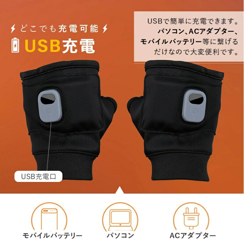 電熱グローブ usb 充電式 ヒーター ピンク ブラック