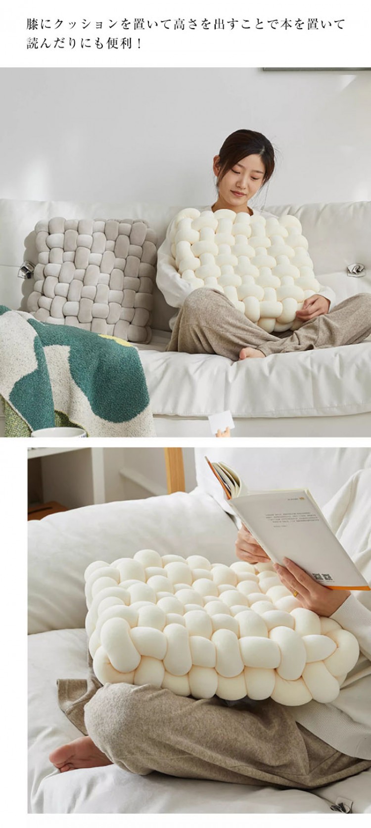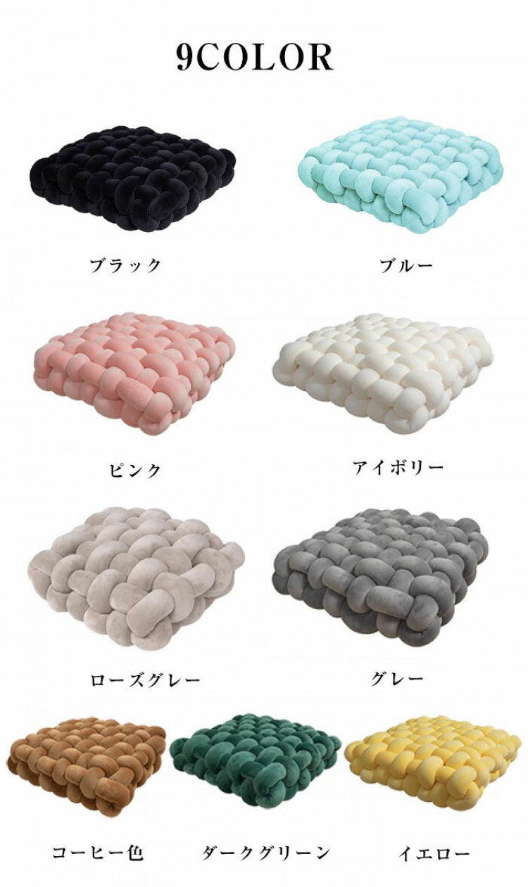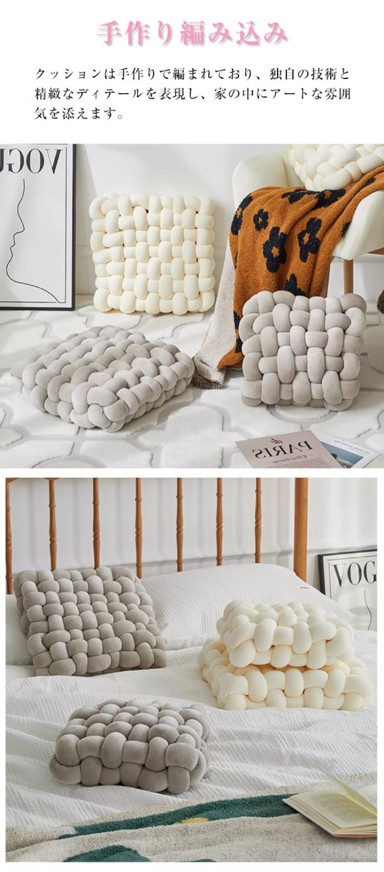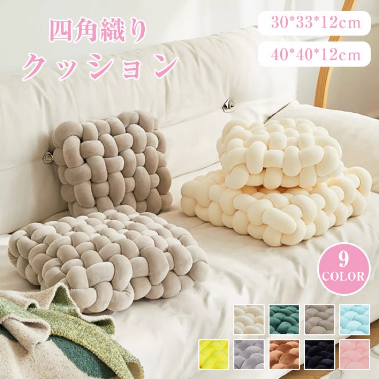 手編み クッション 座布団 厚め 厚手 アイボリー ローズグレー グレー ピンク ダークグリーン コーヒー色 イエロー ブラック ブルー S-30*33*12cm M-40*40*12cm