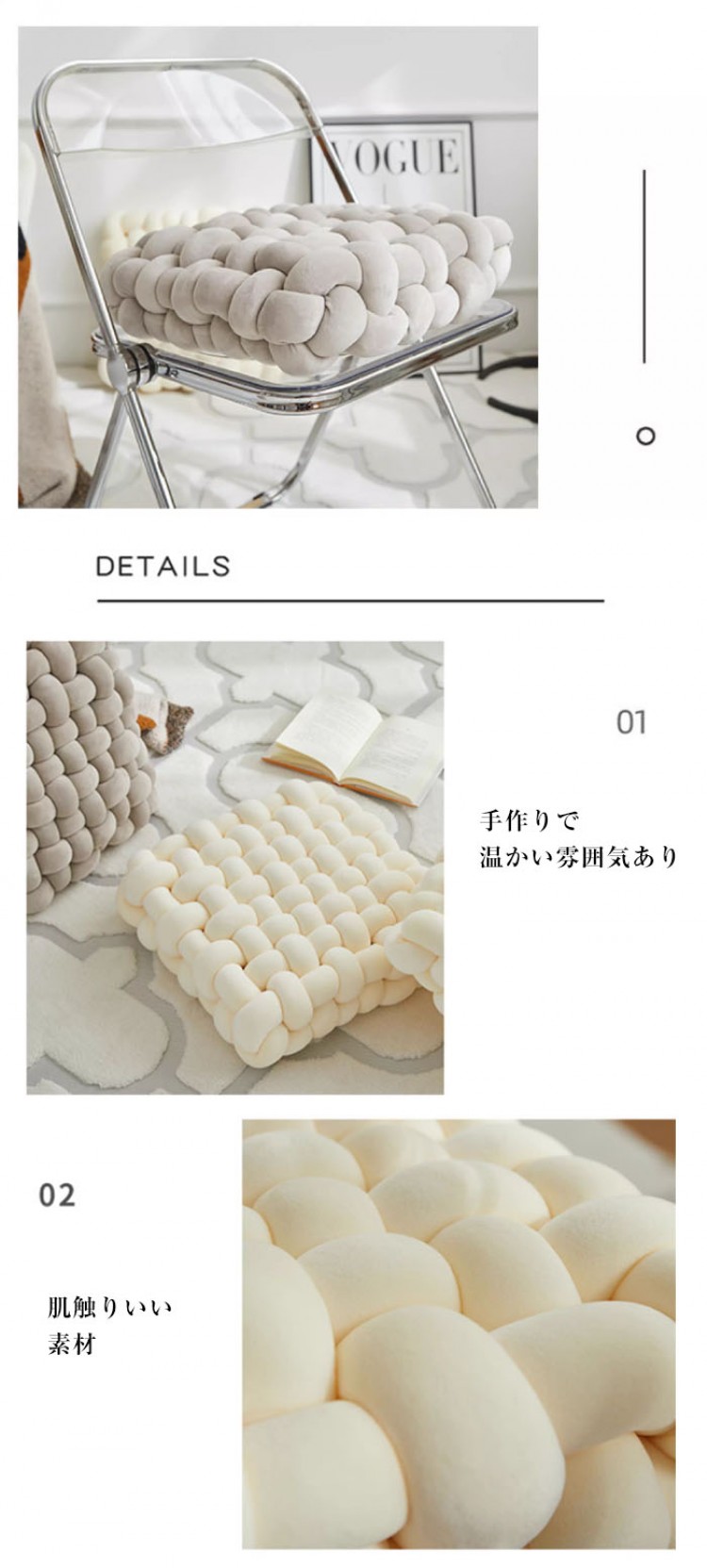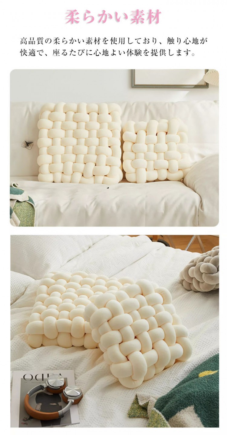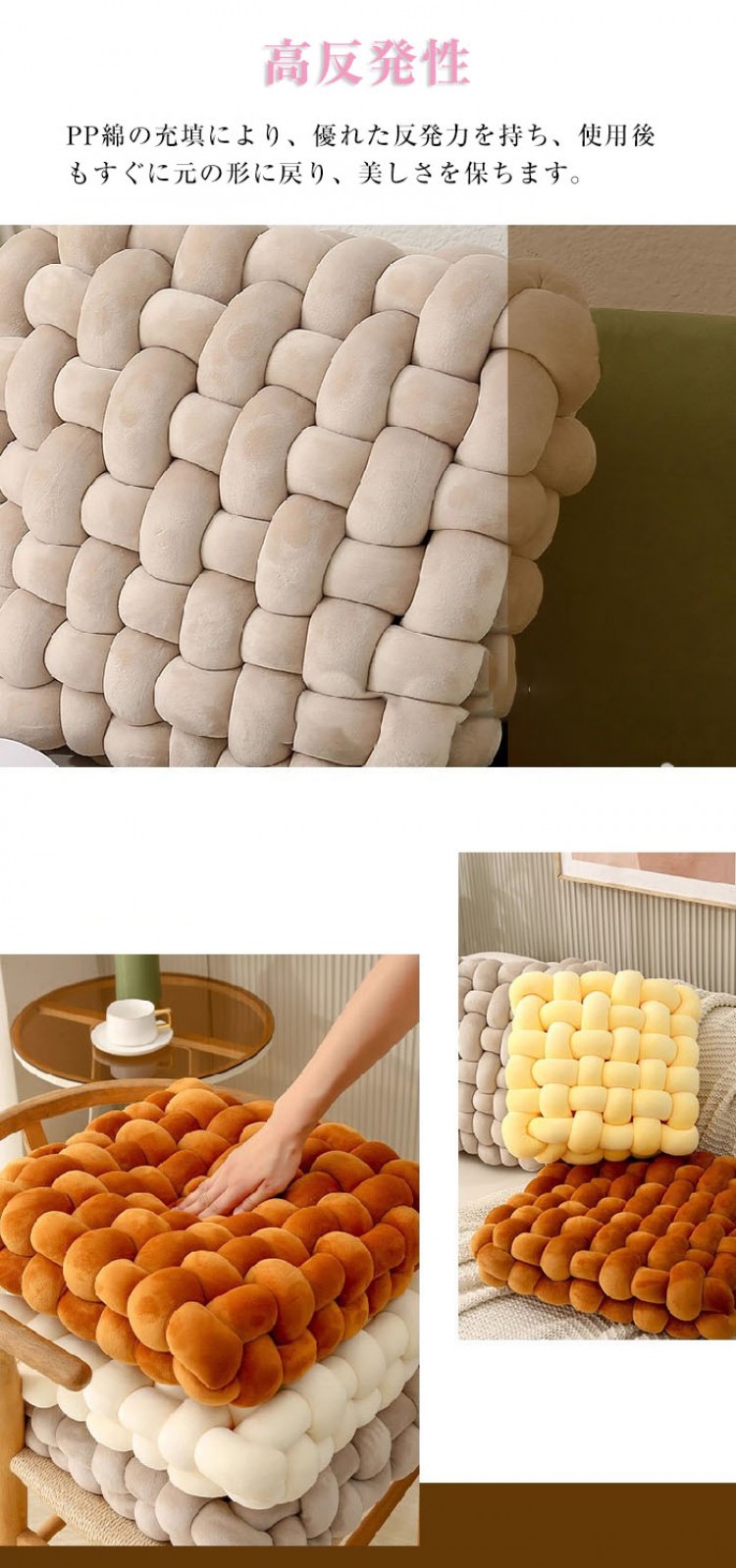 手編み クッション 座布団 厚め 厚手 コンパクト 椅子 ソファー 敷物 背もたれクッション 四角 たたみ用 シートクッション ふわふわ ソファ 膝置き ホームインテリア もこもこ