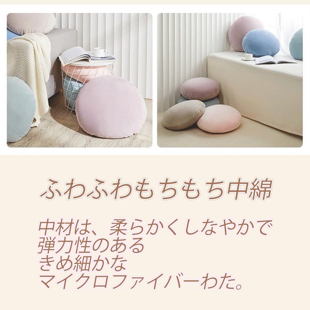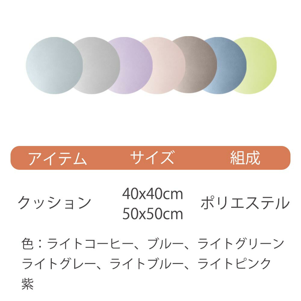 もちもちクッション 直径40cm 直径 ライトコーヒー ブルー ライトグリーン ライトグレー ライトブルー ライトピンク 紫 直径40cm/1980円(税込) 直径50cm/2380円(税込)