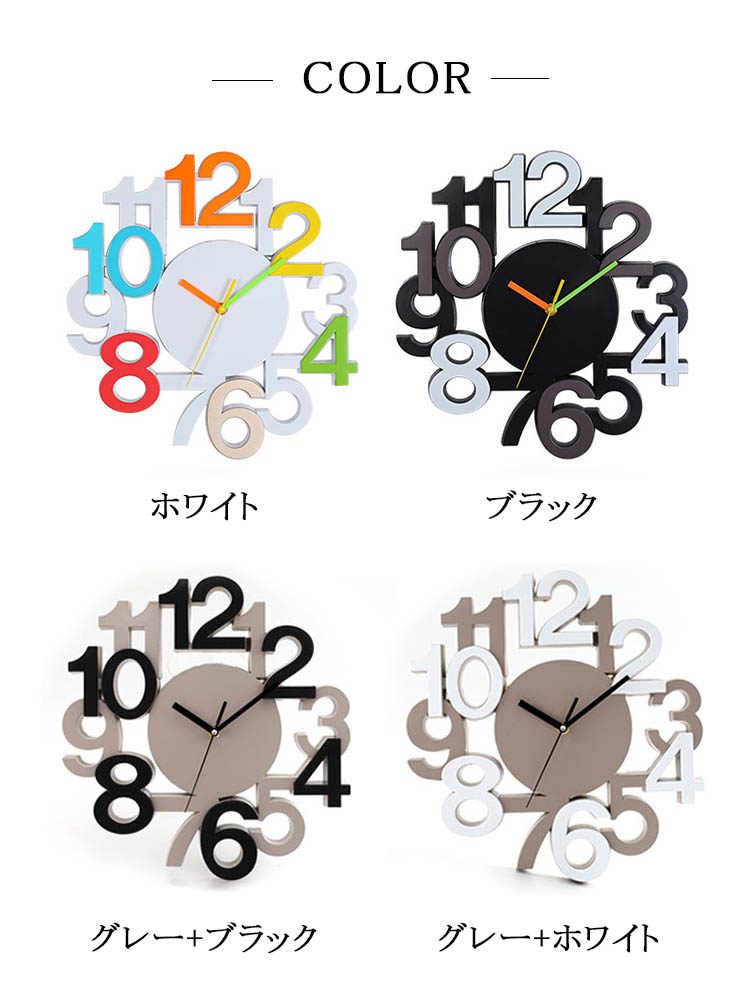 壁掛け 時計 北欧風 インテリア アナ ホワイト ブラック グレー+ブラック グレー+ホワイト