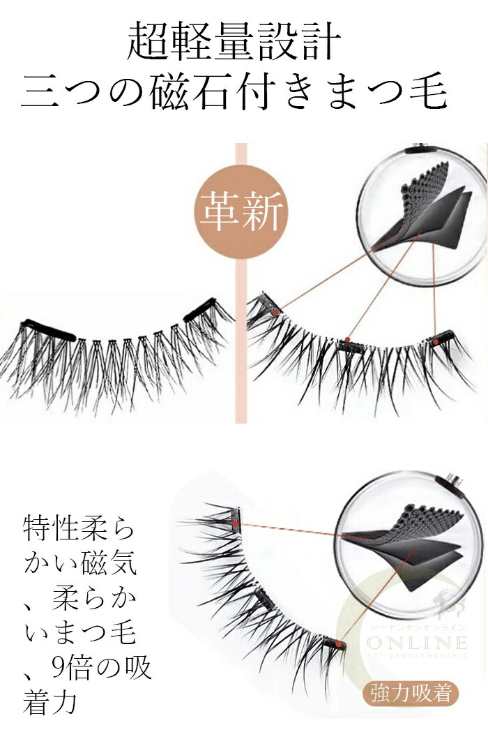マグネット式つけまつげ まつ毛 マグネット つけまつげ 接着剤不要 3Dつけまつ毛 超軽量 磁石 繰り返し使える まつげ 長持ち ナチュラル 携帯便利 磁気つけまつげ マグネットつけまつげ