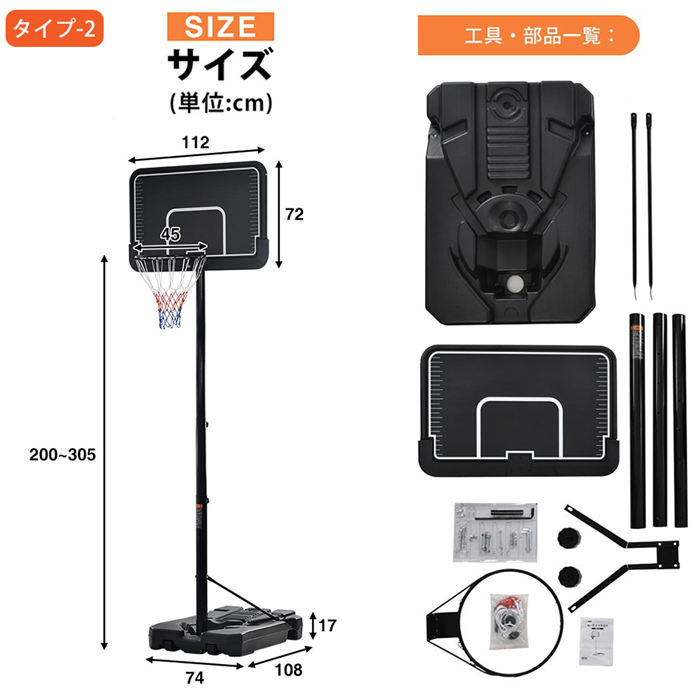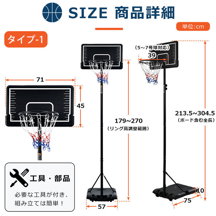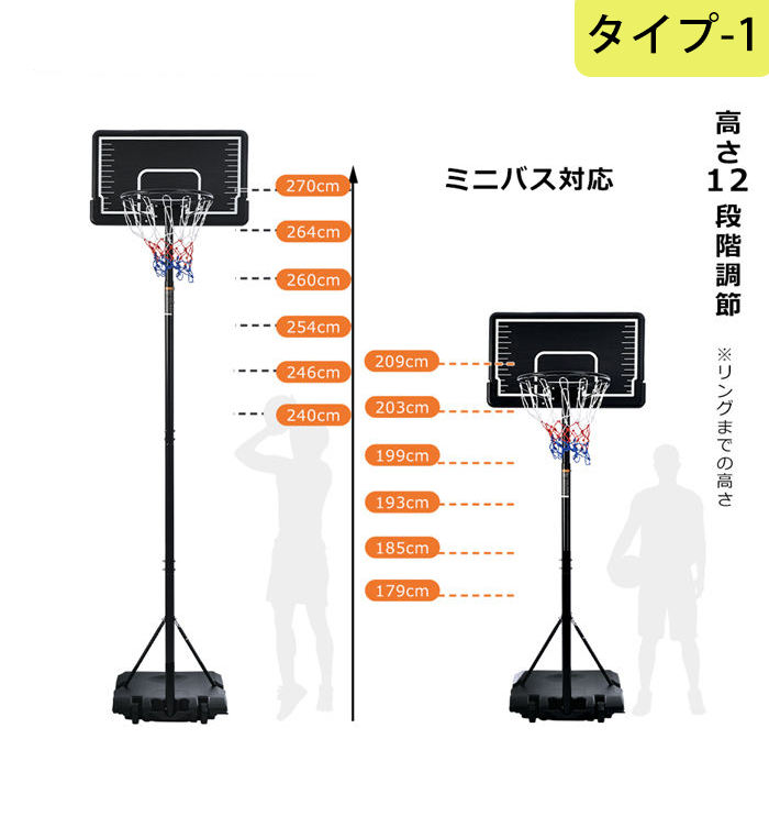 バスケットゴール 屋外 家庭用 179 スポーツ アウトドア 特集 タイプ1:179~270cm[] タイプ2:200-305cm[714382sm]