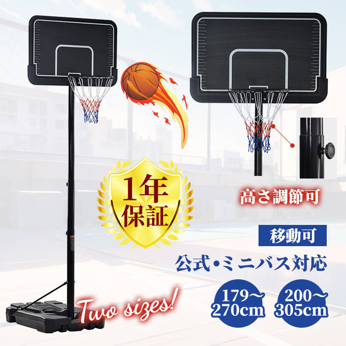 バスケットゴール 屋外 家庭用 179~305cm 高さ8 12段調節 ミニバス対応 ゴール バスケ 室内 子供 大人 キッズ ジュニア 小学生 ゴールネット キャスター付き 移動可 工 バックボード