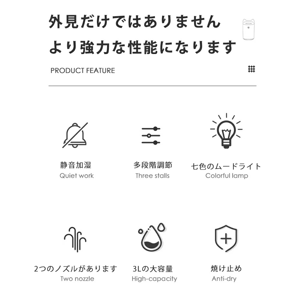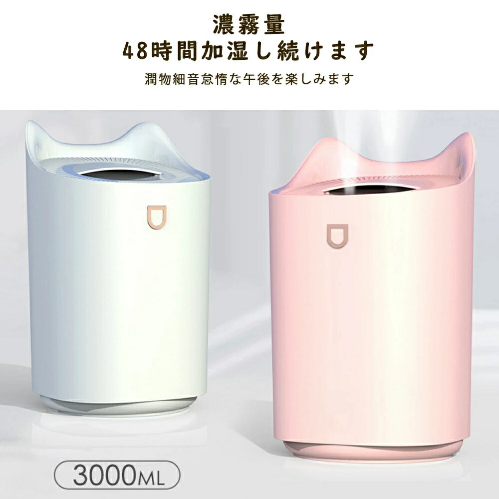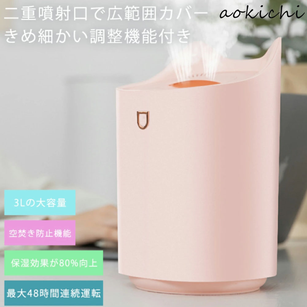 加湿器 小型 3段階調節 静音 卓上加湿器 お手入れ簡単 卓上 おしゃれ オフィス 大容量 上部給水 上から給水 節電 強力加湿 保湿 乾燥 寝室 子供部屋 軽量 空焚き防止 3L 省エネ