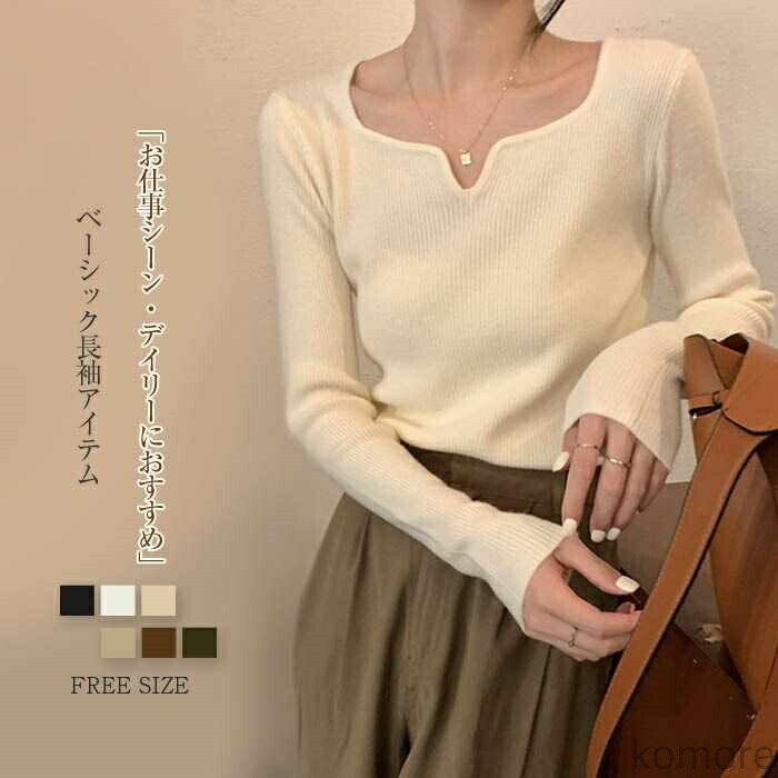 トップス レディース 長袖 秋 ニット プルオーバー レディースニット レディーストップス 長袖ニット 無地ニット 可愛い リブニット セーター 秋ニット