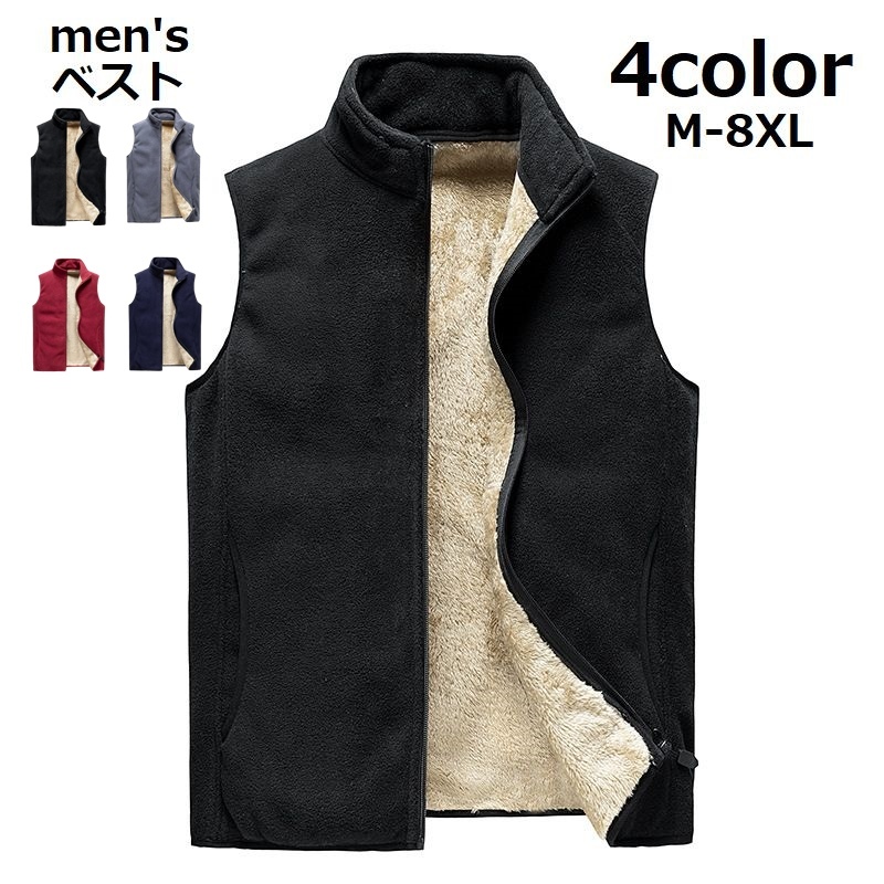 ベスト メンズ 男性 大きいサイズ フリース ジップアップ 前開き ポケット 裏地付き 上着 カジュアル 防寒 もこもこ シンプル
