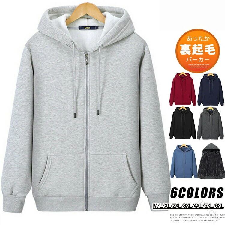 厚手パーカー 裏起毛 メンズ 裏ボア ジップパーカー 無地パーカー 長袖 はおり メンズパーカー トップス フード付き あったか 春 秋 冬 スポーツ ジップアップ 羽織り カジュアル 部屋着