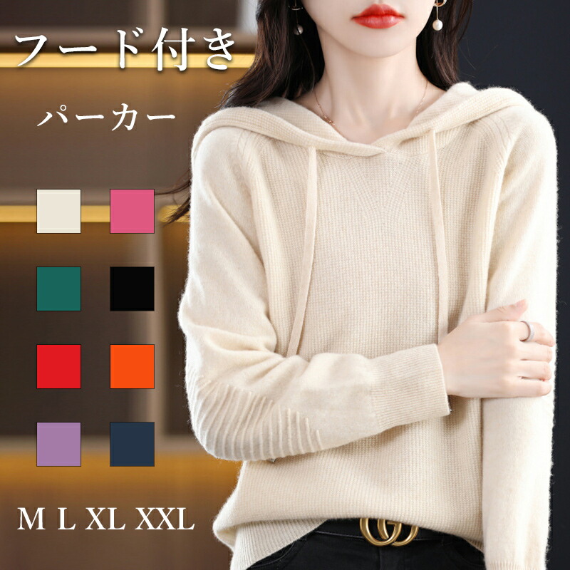 プルオーバー ニット セーター フード付き パーカー 秋冬 レディースレディーストップス 長袖 重ね着 ニットパーカー 伸縮性 無地 シンプル 着まわし 上品 春 秋 カットソー20代 きれいめ