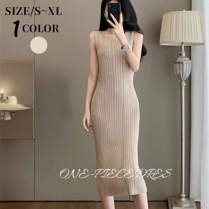 ワンピースドレスニットワンピースタイトワンピースロング丈夏ワンピースカジュアルノースリープ 姫系 セクシー上品 大人 可愛いきれいめお呼ばれ 二次会お出かけベージュ20代 40代 韓国ファッ 30代