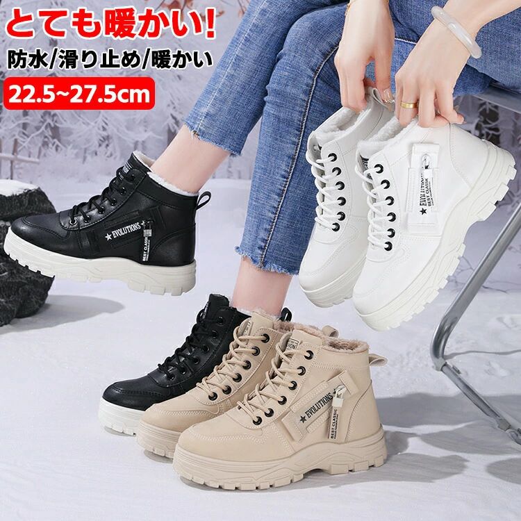 冬用靴 スニーカー レディース ウィンターブーツ ショートブーツ ムートンブーツ 裏ボア カジュアル アウトドア スノーブーツ 防寒シューズ ハイカット 厚底 冬 靴 防滑 防寒 裏起毛 歩きや 保暖