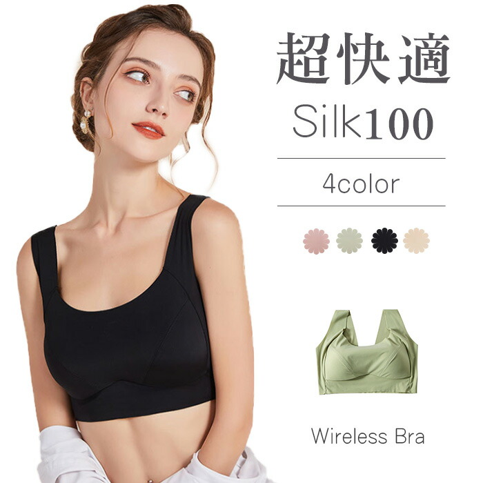 シルクブラ ブラ シルク 絹糸 ノンワイヤーブラ ナイトブラ スポーツブラ ブラトップ ブラジャー 締め付けない下着 外向き 離れ胸の改善 通気快適 裏地シルク99.9%