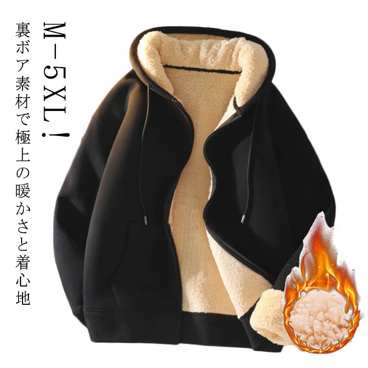 M-5XL 極暖 裏起毛 ジップアップパーカー メンズ レディース 秋 アウター もこもこ 冬 パーカー フード付き 裏ボア スウェット あったか 暖かい ジップパーカー 防寒 保温 ワンマイル 秋冬