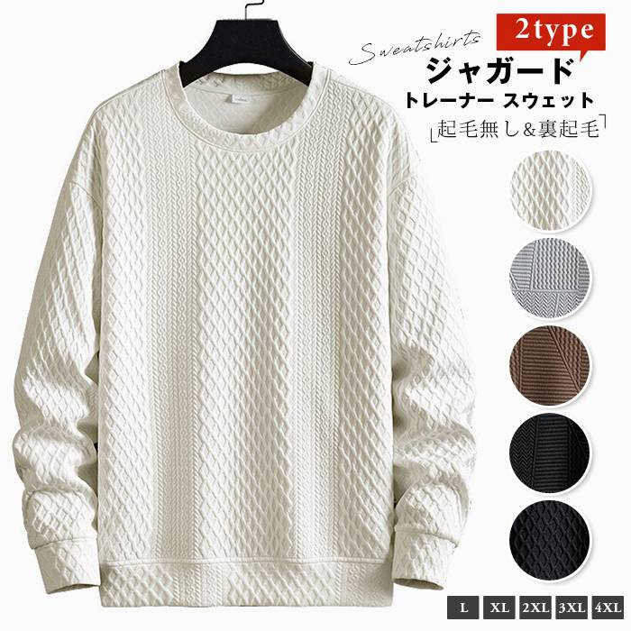 トレーナー スウェット ジャガード トップス クルーネック 起毛無し 裏起毛 2TYPE 春 秋 冬 防寒 ゆったり 大きいサイズ 暖かい