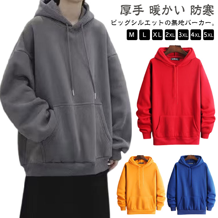 厚手 防寒 裏起毛 パーカー プルオーバー フード付きパーカー トレーナー 無地 長袖 暖かい ビックパーカー ビッグシルエット メンズ 秋冬 ロング丈 男女兼用 プルオーバーパ 大きいサイズ