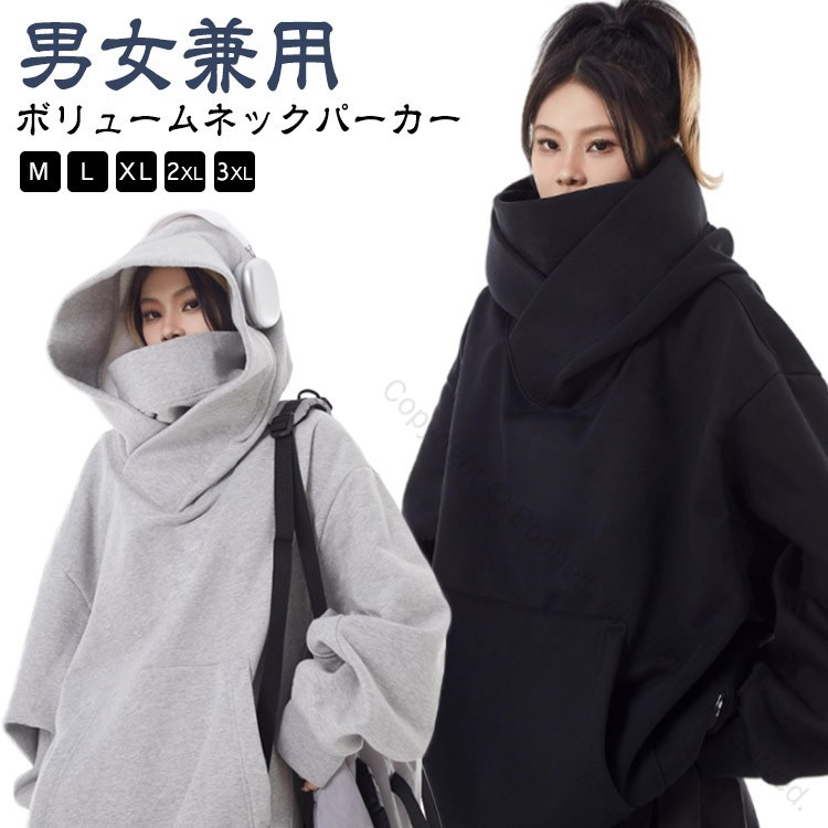 ボリュームネックパーカー 裏起毛 フード付き 忍者パーカー メンズ 男女兼用 カジュアル プルオーバー 保温機能 ゆったり 吸湿 柔らかい 通気性抜群で快適な着心地の長袖トップス 肌に優しい