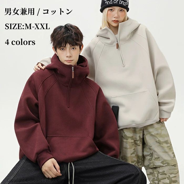 パーカー 立ち襟 プルオーバーパーカー 男女兼用パーカー 無地 フーディプルオーバー 長袖 メンズ スタンドカラーパーカー ゆったり風 フード付き ユニセックス フーディー トップ カジュアルTシャツ