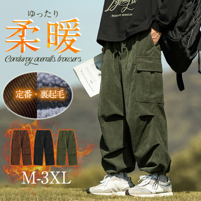 大きいサイズ カーゴパンツ ワイド ズボン パンツ コーデュロイ メンズ ウエストゴム 裏ボア ストレッチ ルームウェア イージーパンツ シンプル