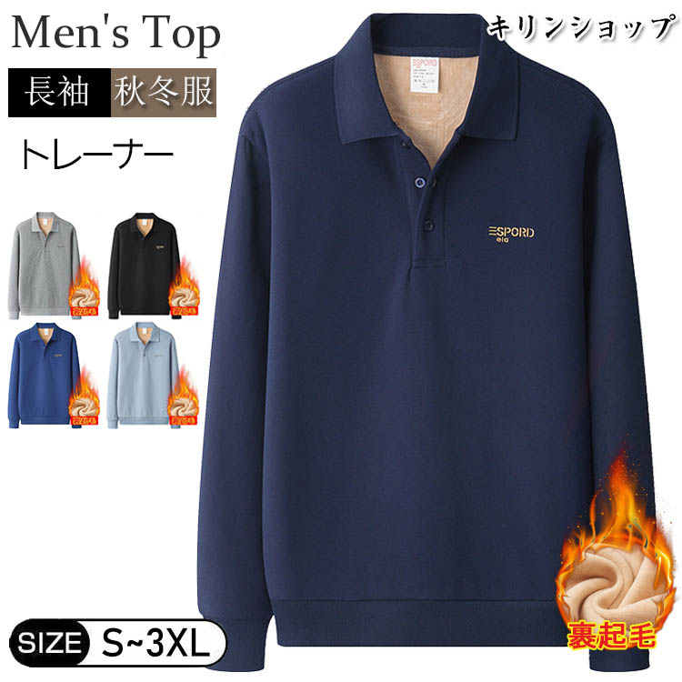 ポロシャツ メンズ ゴルフシャツ 秋冬用 防寒 暖かい 裏起毛 シニア服 ゴルフウェア 長袖ポロ 襟付きトレーナー ビジネス スポーツ 40代 50代 60代 紳士服 厚手 無地 チームウェア 秋冬