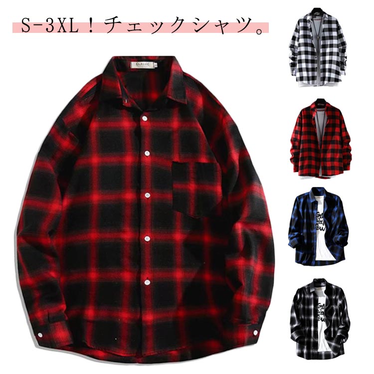長袖 おしゃれ 秋 長袖シャツ シンプル ストリート チェック柄 メンズ チェックシャツ 春 冬 シャツ 秋服 カジュアル 大きいサイズ カジュアルシャツ ダンス 衣装 ボタン