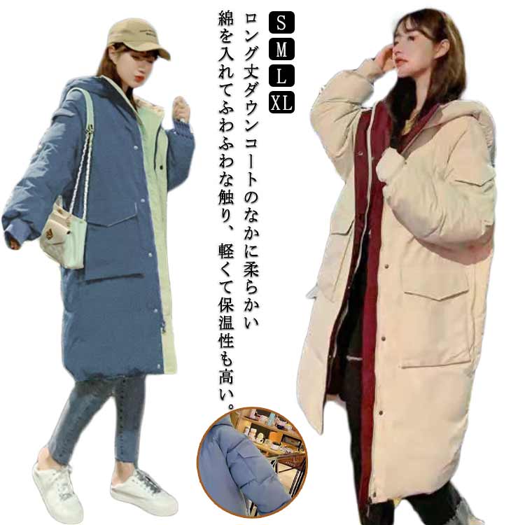 ベンチコート レディース 中綿コート フード付き ロングコート 膝丈 冬 冬服 中綿入り 軽量 防寒 防風 厚手 暖かい アウター 通勤 通学 ゆったり 韓国風 カジュアル アウトドア 大きい 可愛い
