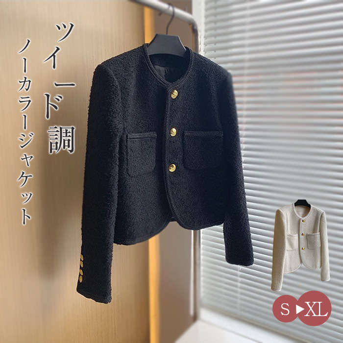 ツイードジャケット ジャケット レディース 春秋 フォーマル ショート丈 ノーカラー 春 秋 冬 アウター ママスーツ フォーマルジャケット ツイード 秋アウター 上品 裏地付き 日常 デ エレガント