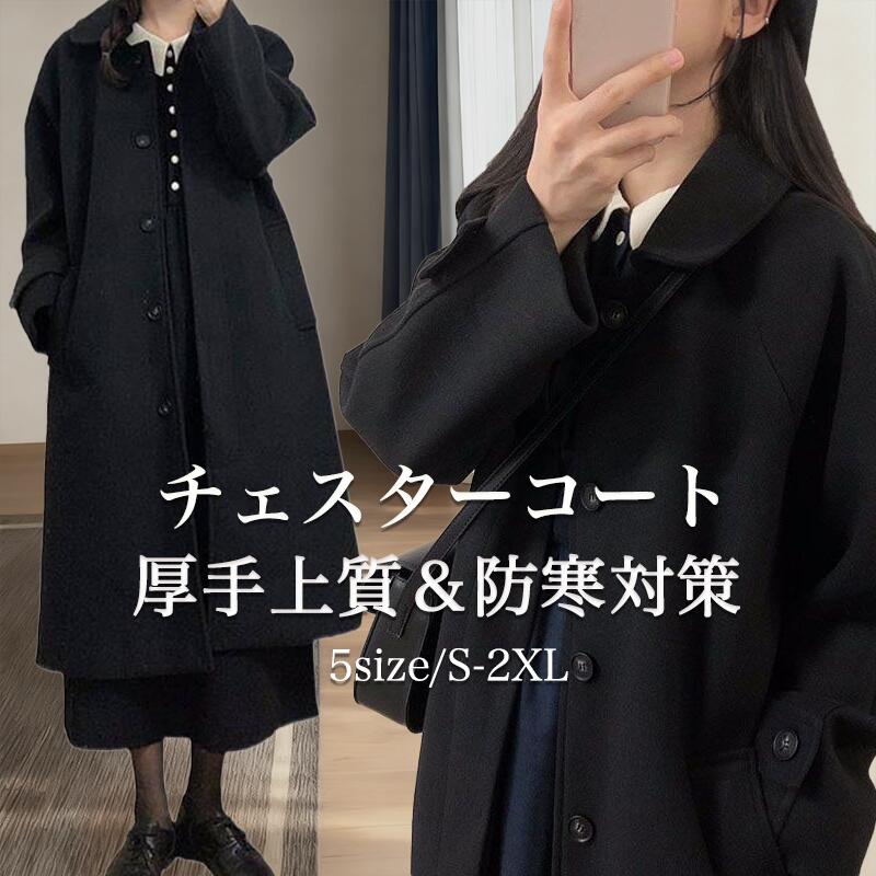 チェスターコート コート レディース 厚手 冬 アウター 通学 通勤 大きいサイズ ロングコート ゆったり カジュアル シンプル 黒 体型カバー オシャレ着痩せ お出かけ 可愛い 春秋冬 膝下 暖かい