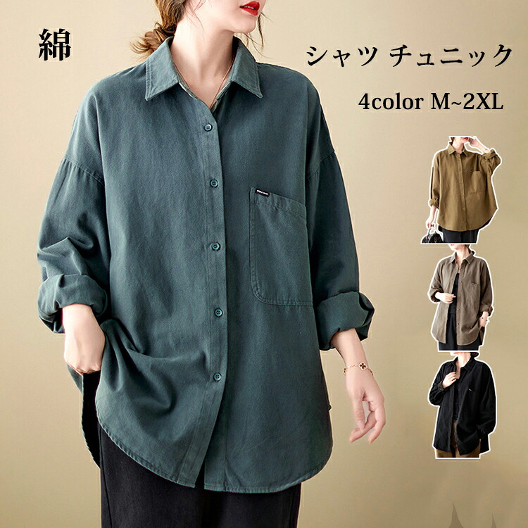 シャツ チュニック トップス レディース ジャケット コート ブラウス ロングシャツ シャツブラウス ロング 長袖 春 秋 冬 無地 大きいサイズ ゆったり 前開け 綿 羽織り シンプル 体型カバー