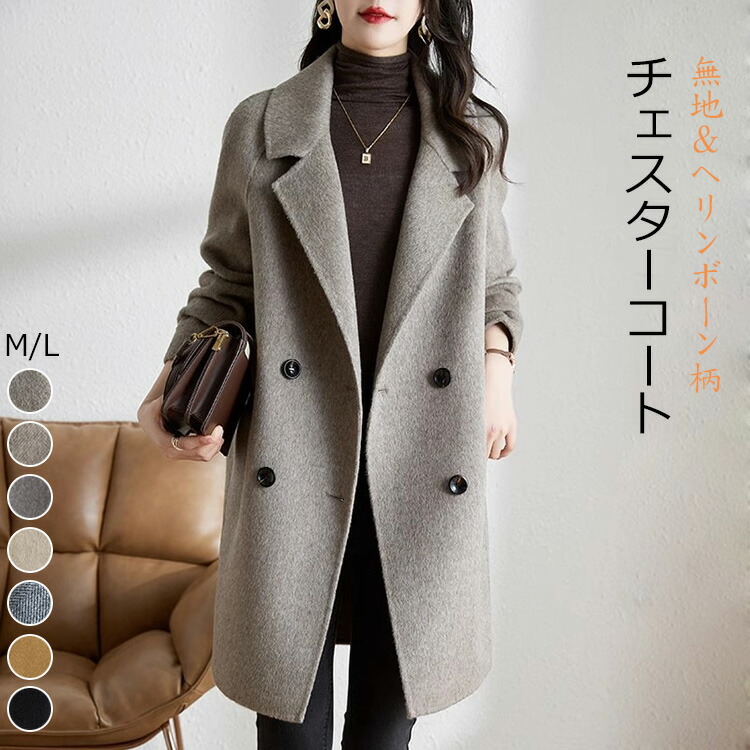 チェスターコート ラシャ レディース 秋冬 ロングコート 無地 人柄 アウター コート ジャケット トレンチコート ラシャコート ミディ丈 膝上丈 カバーオール ヘリンボーン柄 ポケット付 チェスター