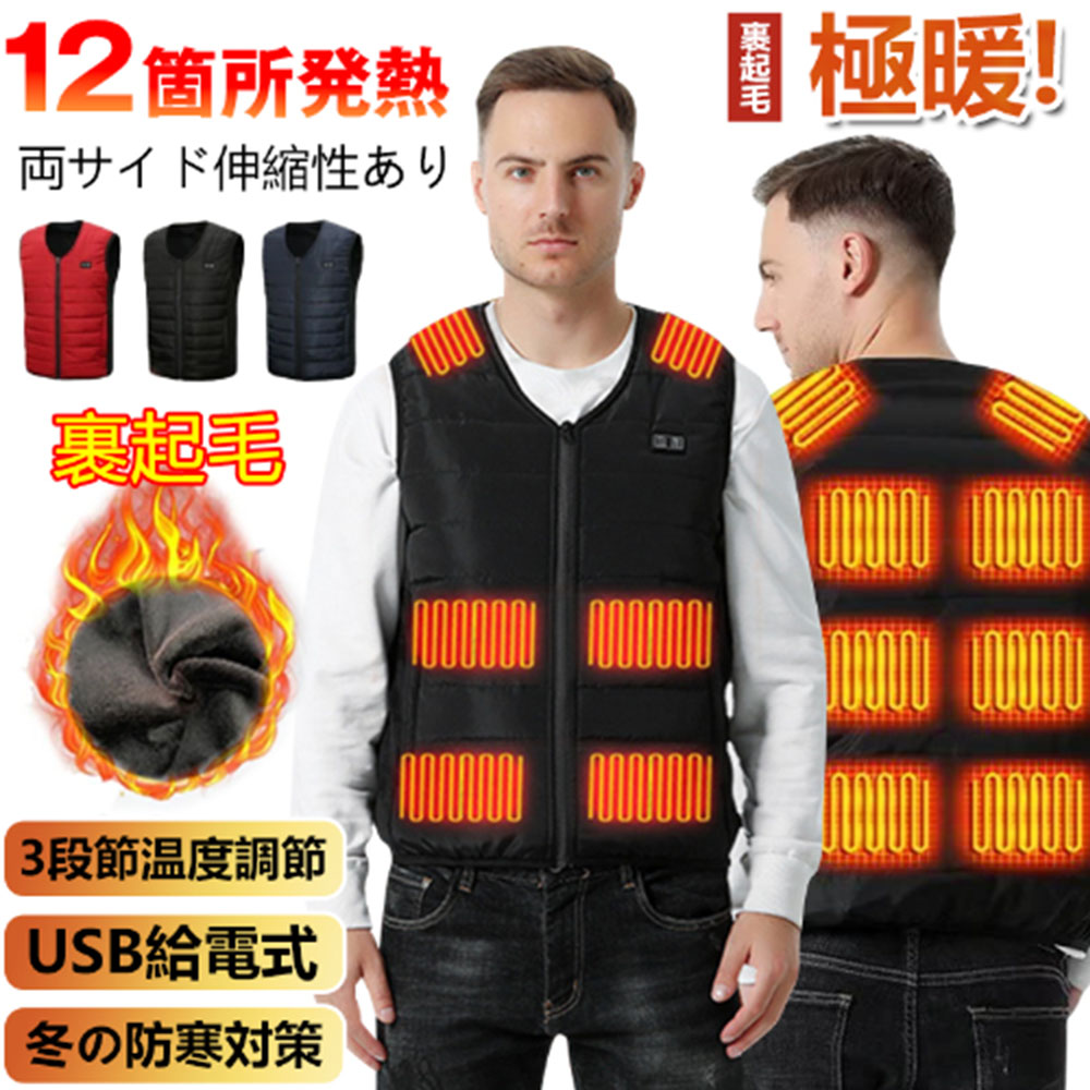 電気ベスト 電熱インナー 裏起毛 加熱ベスト 洗濯可能 アウトドア 防寒保温 温熱ベスト 加熱服 秋冬 薄手 アウター 発熱コート 外仕事 通勤通学 バイク 釣り ゴルフ ギフトプレゼント