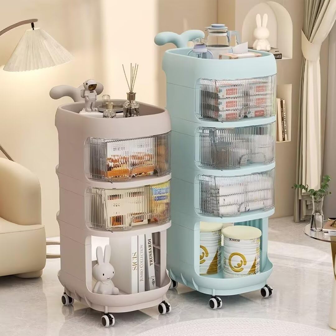 ベビーワゴン キャスター付き 4段 ベビー用品 収納ワゴン 引き出し 取っ手付き 赤ちゃん オムツ収納 多機能 収納カート 移動便利 かわいい 大容量