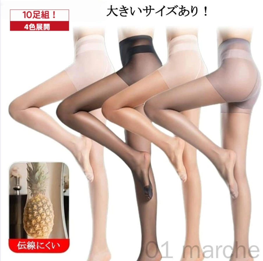 レッグウェア パンスト 10足セット ストッキング 伝線にくい パンティストッキング セクシー 女性用 薄型 通気性抜群 透明感 美脚効果 大きいサイズ対応 伝線防止 レディース 肌色 ブラック 無地