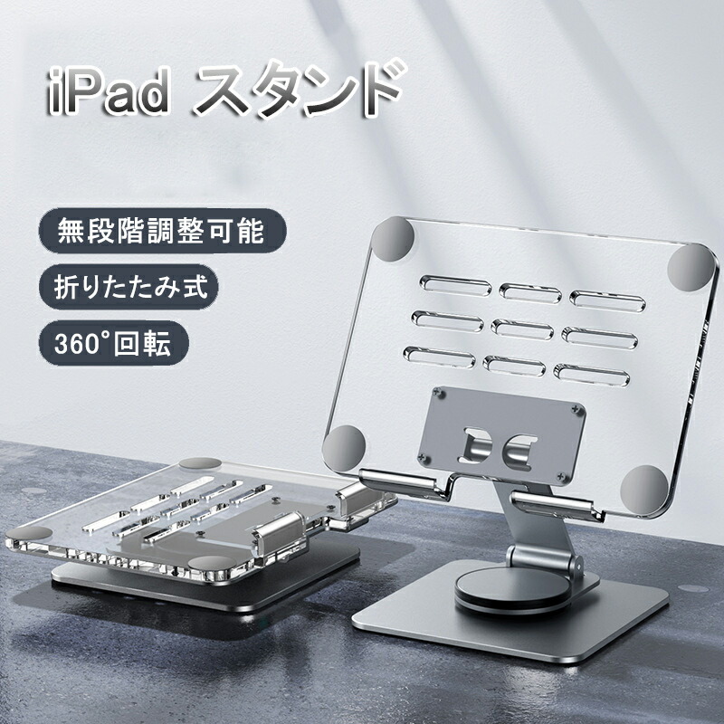 iPad用スタンド 360度回転 タブレットスタンド 折畳み式 ノートパソコンスタンド高さ角度調整可能 スタンド 横置きタブレットホルダー 収納便利 姿勢改善 滑り止め 4.7 タブレットPCスタンド