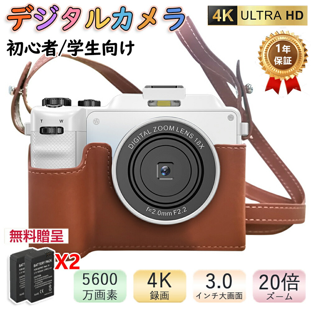 デジタルカメラ 4K 防塵 かわいい 5600万画素 超高画質 多機能 軽量 3インチ大画面 18倍ズーム 高倍率 手ぶれ補正 オートフォーカス 一眼レフカメラ 3連写 定時自撮り キッズカメラ