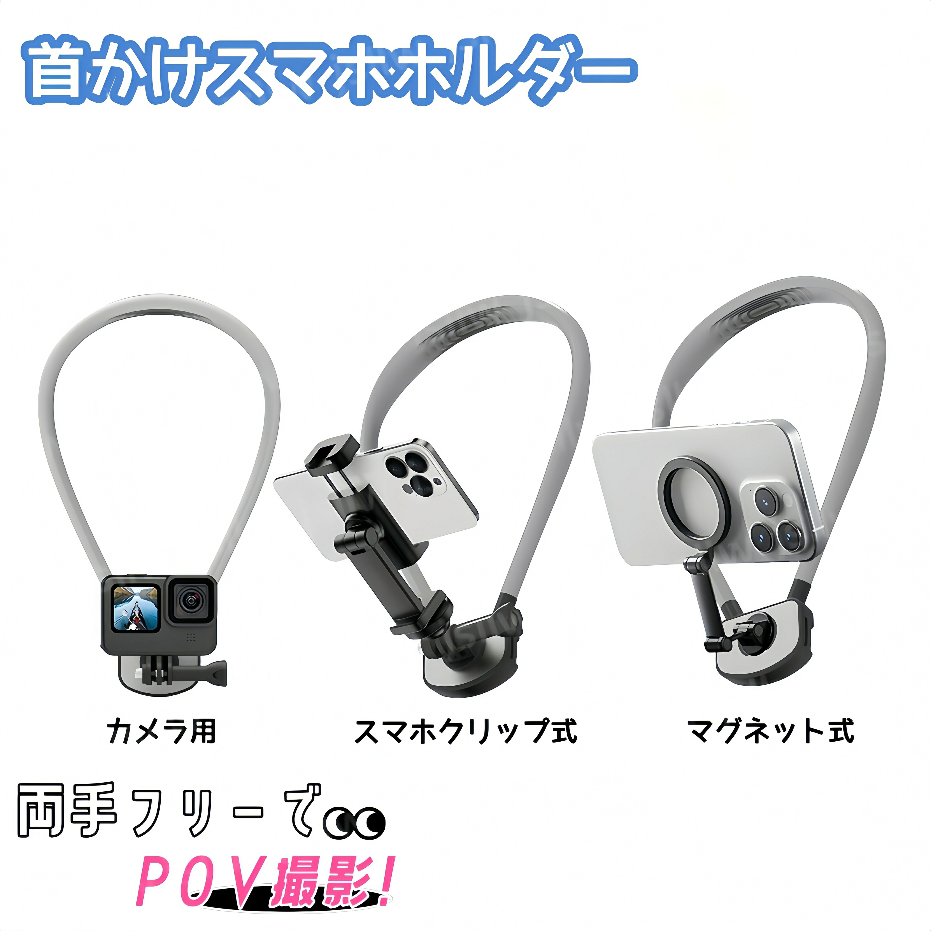 首かけスマホホルダー POV撮影 スマホネックホルダー クリップ式 動画撮影 スマホブラケット 両手解放 Vlogを撮る 自撮り ウェアラブルカメラ アクションカム用アクセサリー スマートフ 日常動画