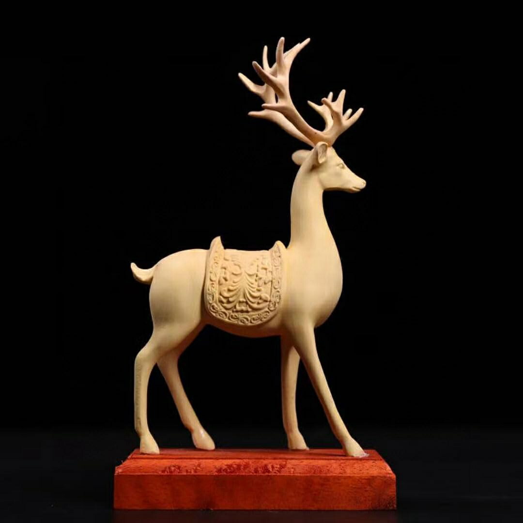 木彫り エゾシカ 鹿 天然木製彫像 木製彫刻 置物 招財 開運 金運アップ インテリア 金運祈願 商売繁盛祈願 パワーストーン 新年 贈り物 (高さ19 お礼