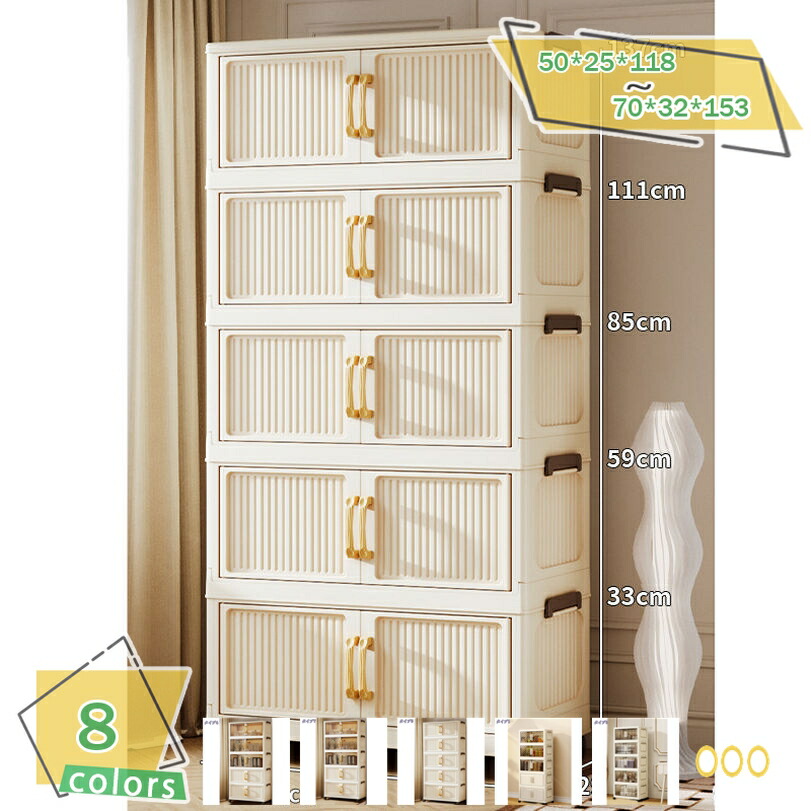 収納ボックス 折りたたみ式 収納キャビネット組立簡単クローゼット扉付き折り畳みコンテナ おしゃれ収納ケース キャスター付き 強い耐荷重 書類 スナック 収納棚 リビングルーム キッチン キッチン用品