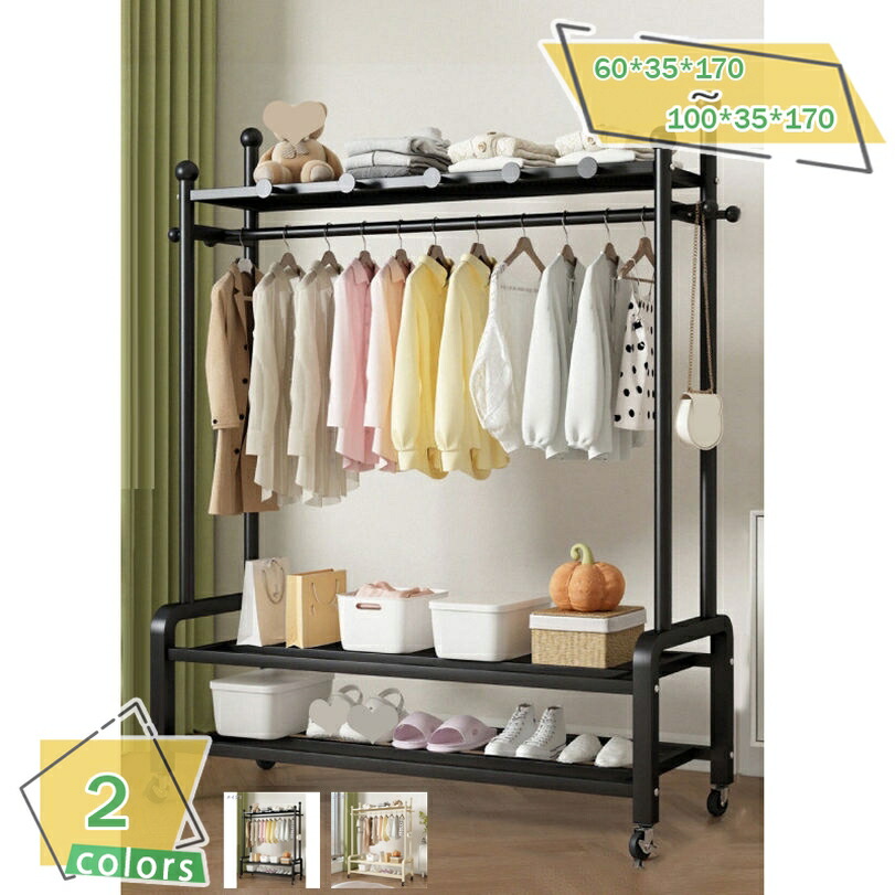 ハンガーラック スリム 頑丈 おしゃれ 収納 部屋 ハンガー ラック キャスター付き 省スペース 収納付きハンガーラック 部屋/玄関/リビング/子供部屋大容量 コートラック