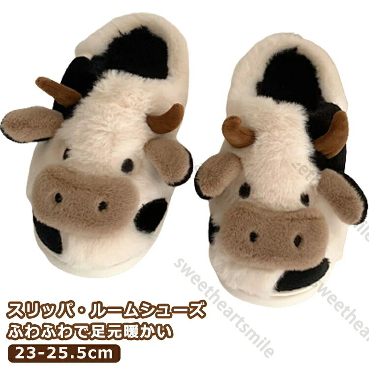 スリッパ 冬 ルームシューズ 可愛い もこもこ かわいい アニマル 暖かい 乳牛 あったか 室内 レディース プレゼント 冷え対策 おしゃれ 洗える 防寒 滑り止め ふわふわ もっちり 動物 室内履き