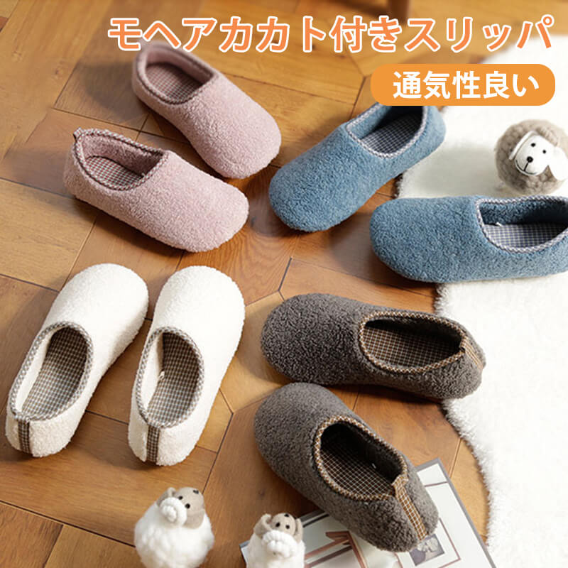冬 あったか プレゼント 暖かい モヘア素材で肌に優しい ルームシューズ かわいい 丈夫でへたりにくい もこもこ