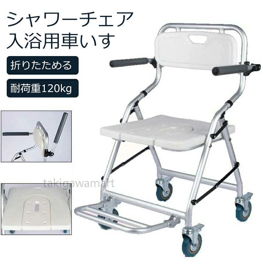 椅子折りたたみ 入浴用車いす 贈り物介護 シャワーチェア ブレ一キ付き U型シート 軽量 お風呂椅子 キャスター付 背もたれ バスチェア 滑り止め トイレ シャワー用 贈り物 防水